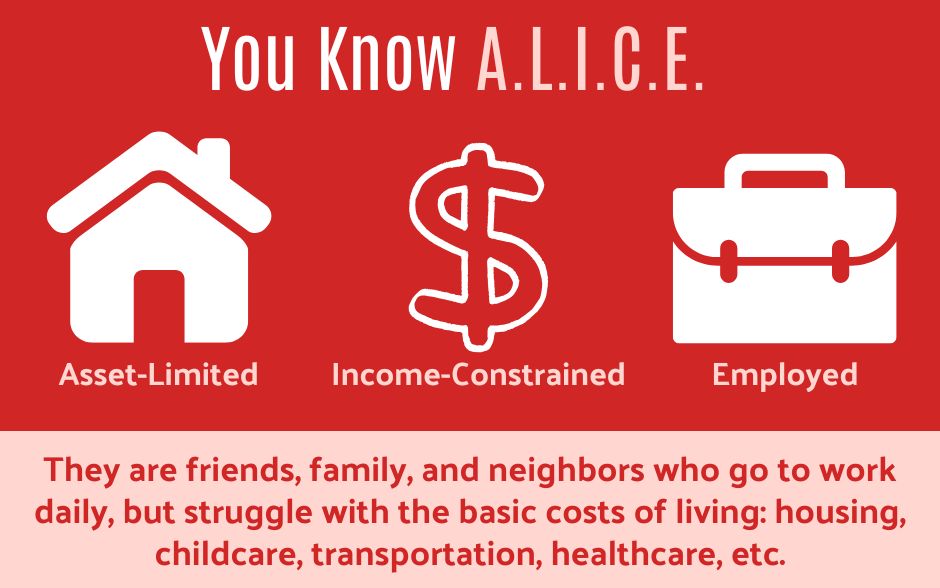 - Assess our community's unique challenges in the workforce and help bridge the gap between financially-fragile ALICE households and employers by providing resources and overcoming obstacles.