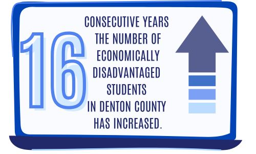 - Leverage donations from individuals and corporations with local, state, and federal grants to identify and address gaps facing Denton County students of all ages and their families so they can succeed in school, work, and life.